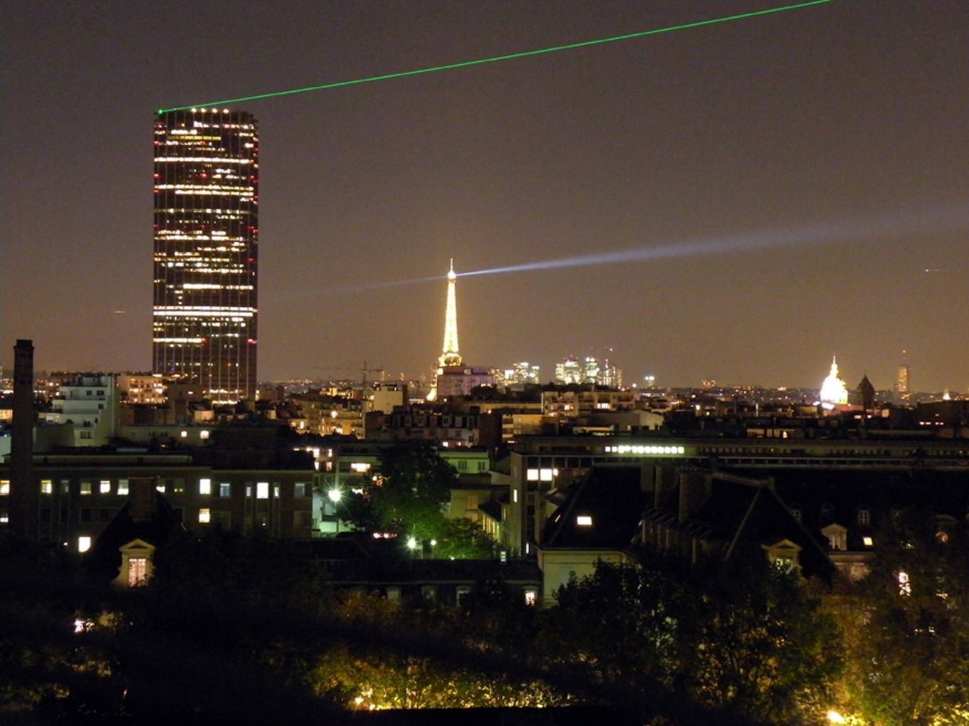 En 2009, à l’occasion de la Semaine européenne de la physique des astroparticules, la tour Montparnasse (15e) s’est transformée en détecteur de particules cosmiques ! Pour faire simple : notre planète est constamment bombardée de rayons cosmiques qui, en entrant dans l’atmosphère, cassent les molécules d’air et créent de nouvelles particules appelées « muons ». Grâce à des capteurs installés au sommet de l’édifice, chaque fois qu’un muon était détecté, cela déclenchait un rayon laser. Celui-ci, envoyé vers l’Observatoire de Paris, symbolisait le passage d’une particule cosmique à travers l’atmosphère, et rendait visible un phénomène d’ordinaire invisible.