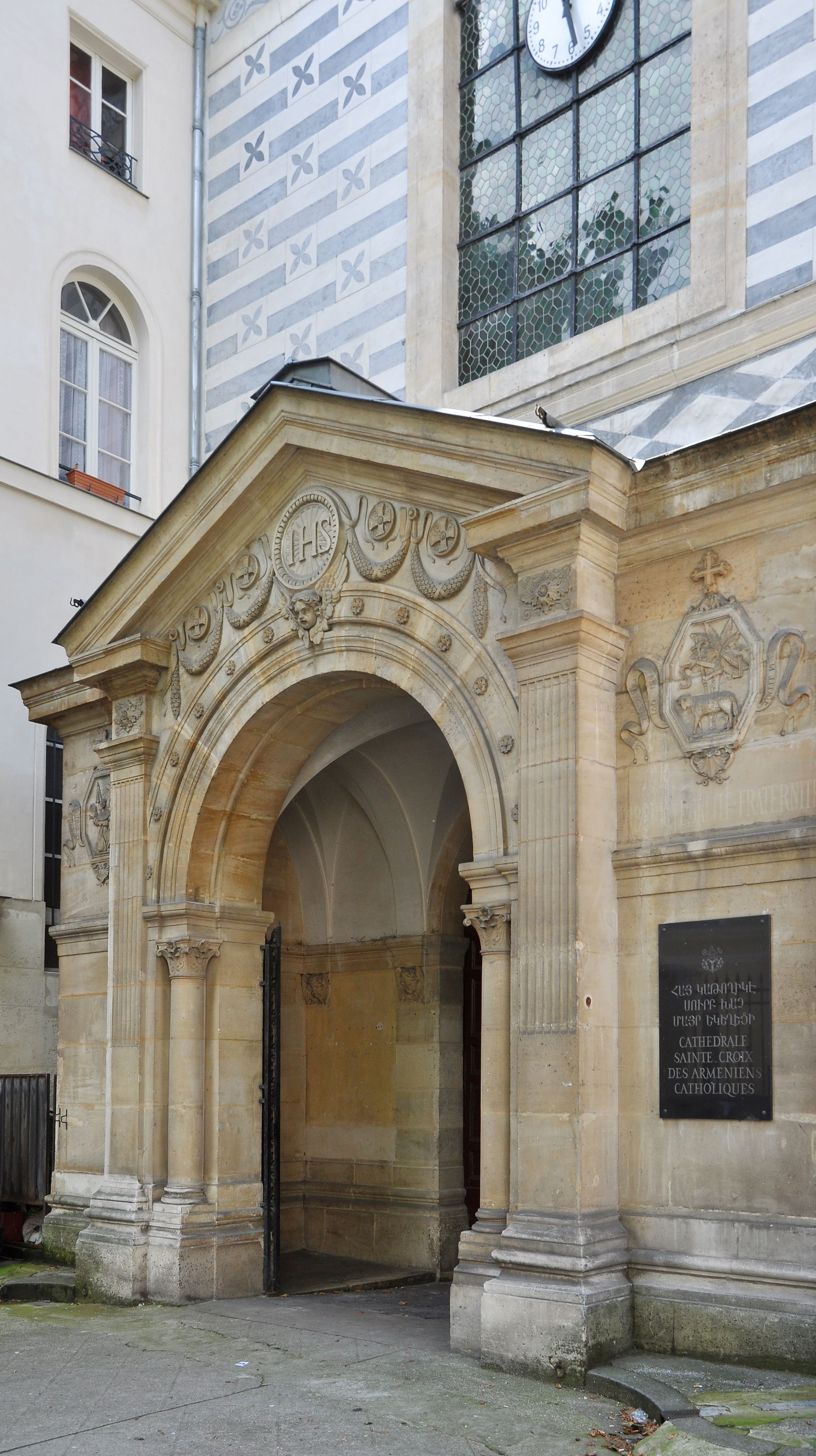 Détail de la façade de la cathédrale Sainte-Croix des Arméniens.