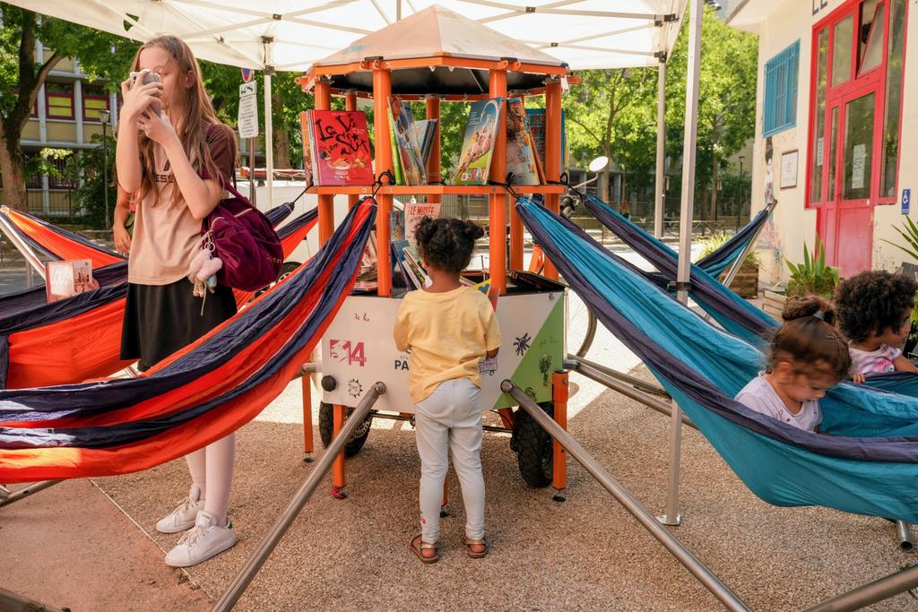 Le projet Bibliambule, réalisé en 2024, apporte, depuis sa concrétisation, une touche de poésie dans les rues du 14e arrondissement. Cette bibliothèque mobile, installée sur un triporteur, se promène directement dans l’espace public pour leur donner le goût de lire aux enfants, là où ils se trouvent. Albums, histoires et moments de partage s’invitent ainsi au coin des rues et lors d’événements de quartier, transformant chaque arrêt en petite bulle de lecture accessible.